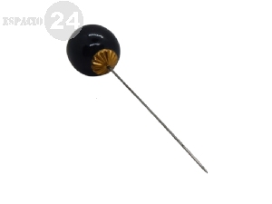 Antiguo alfiler de sombrero de forma esférica, aparentemente de madera laqueada de color negro