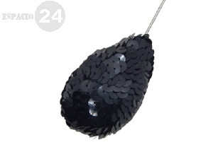 Antiguo alfiler de sombrero de lentejuelas color negro. de forma ovalada.