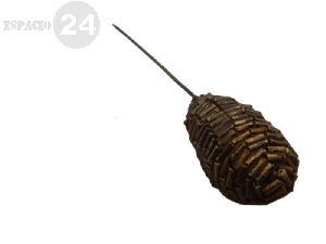Antiguo alfiler de sombrero de canutillos de cristal color dorado, de forma ovalada.