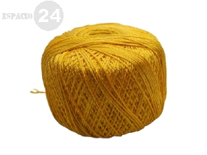 Antiguo Ovillo grande de hilo Perlé apenas comenzado, color amarillo, sin etiqueta.
