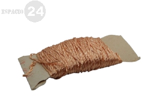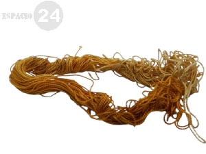 Antigua Madeja de hilo Perlé, bitono naranja y dorado, sin etiqueta, apenas comenzado.